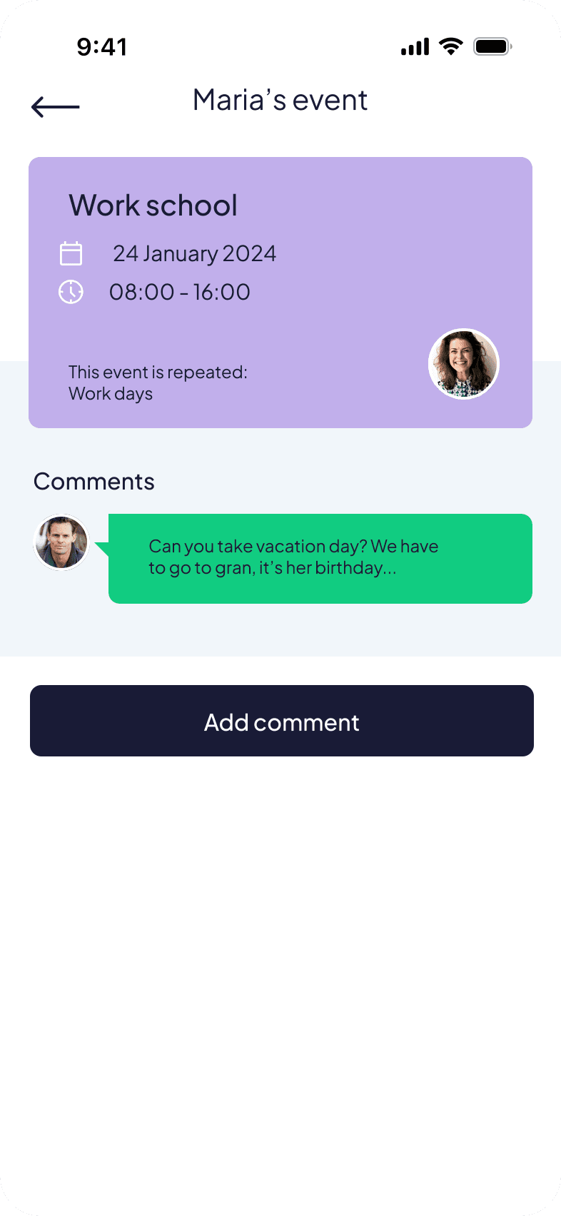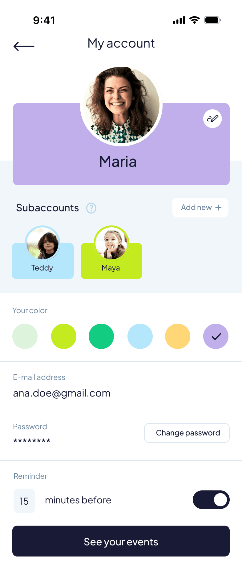 The first prototype focused on making event creation fast and visible to everyone in the family.