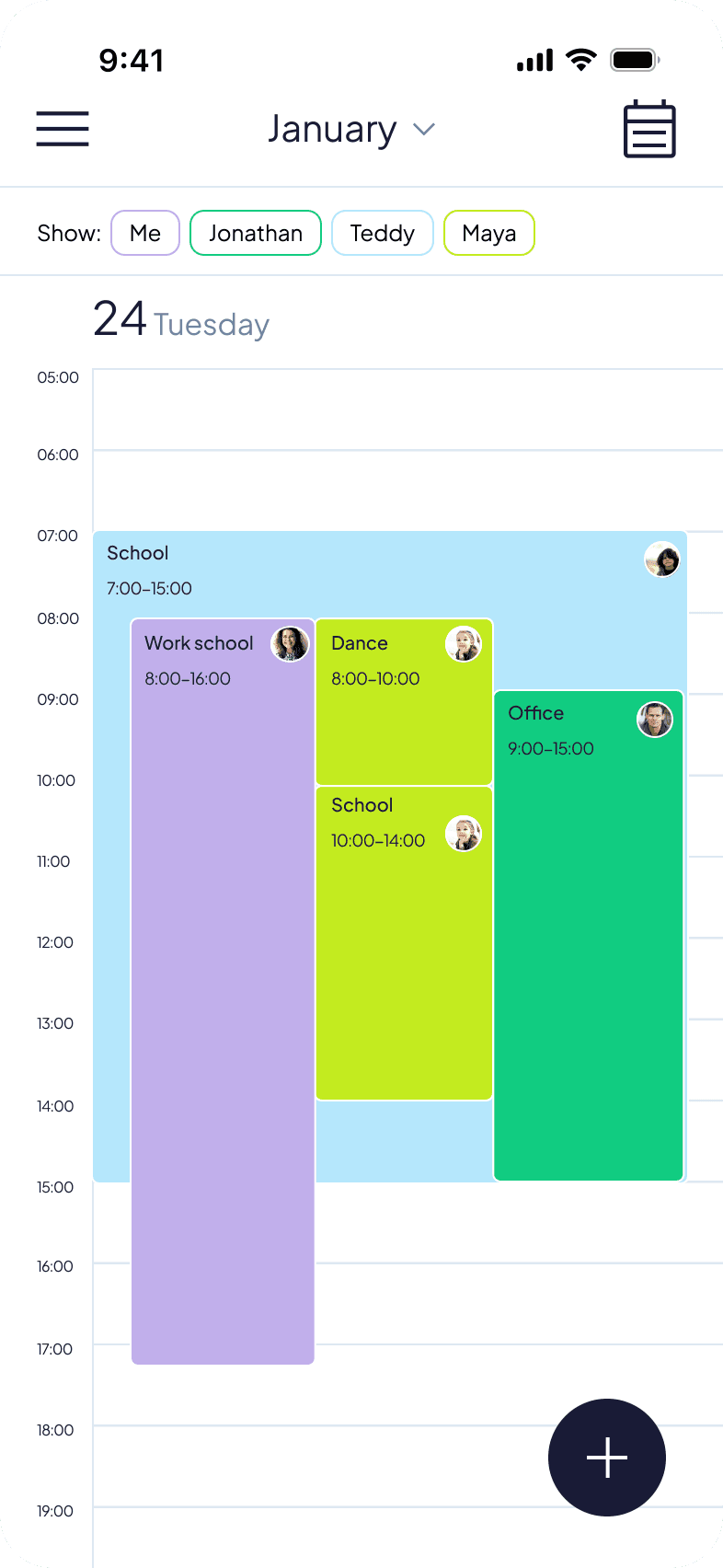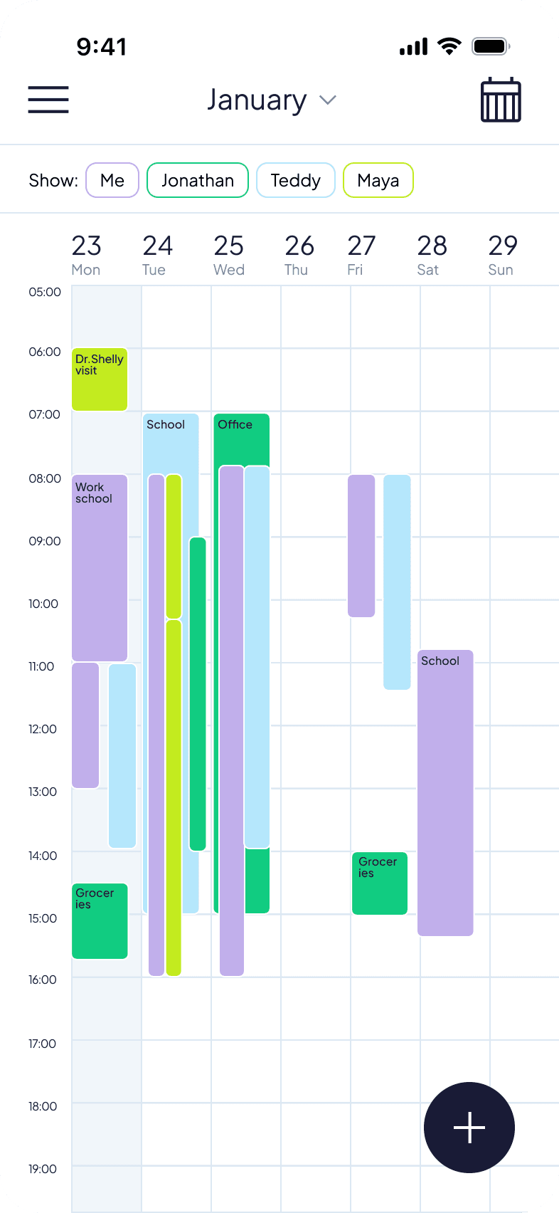 Views full family schedule