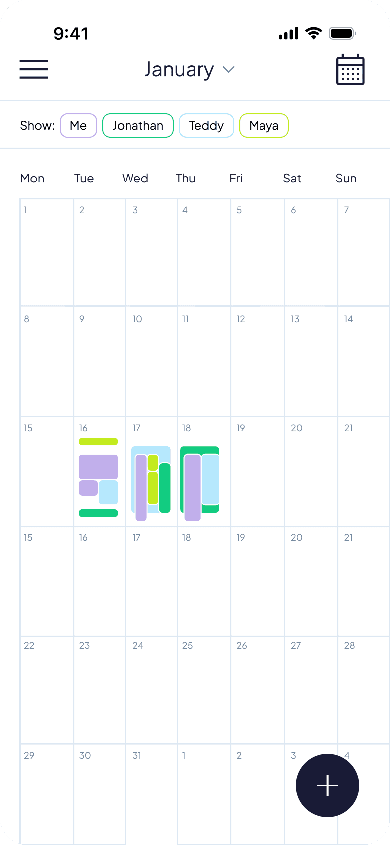 At first, I thought the app would be mainly for families with school-aged children. But research showed that many different families could use it - including those who live in separate households. In later interviews, people said they often struggle with unclear communication, problems syncing schedules, and the stress of managing a busy family life.