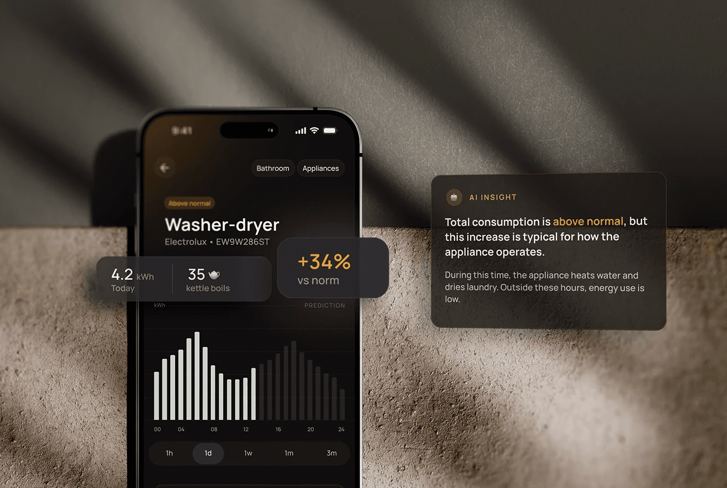 Mobile app that helps users understand their home energy usage through simple insights instead of complex data. It focuses on clarity and context, making it easier to see what’s happening and feel in control without needing technical knowledge.